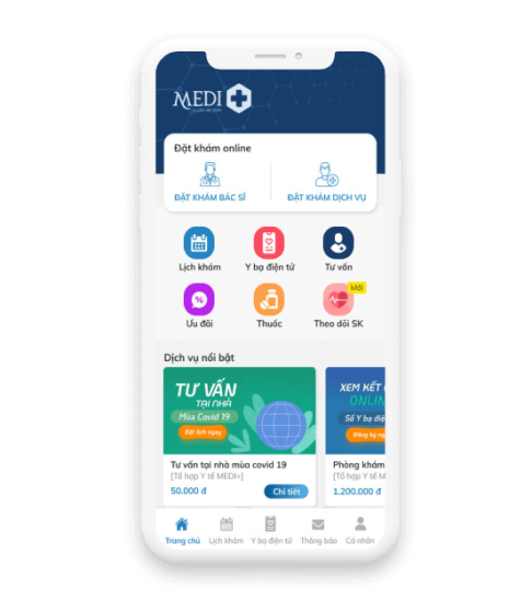 Khách hàng có thể đặt lịch từ xa, truy cập bệnh án điện tử, tư vấn khám bệnh từ xa và chăm sóc sau khám dễ dàng qua ứng dụng MEDI+.